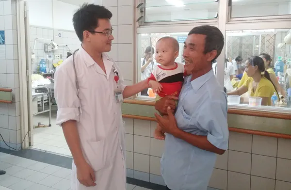 Bé V. hồi phục và không bị di chứng sau hơn 7 tuần điều trị bệnh viêm màng não mủ. Ảnh: Vietnamnet