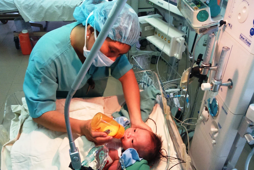 Trước đó, ngày 11-2, sản phụ Lê Quỳnh Trung (22 tuổi, trú tại P.An Khê, Q.Thanh Khê, Đà Nẵng) sinh thường tại Bệnh viện Sản Nhi Đà Nẵng một bé trai với cân nặng 2,8kg, nhưng cháu bé có biểu hiện tím tái và càng khóc thì càng tím tái và khó thở.