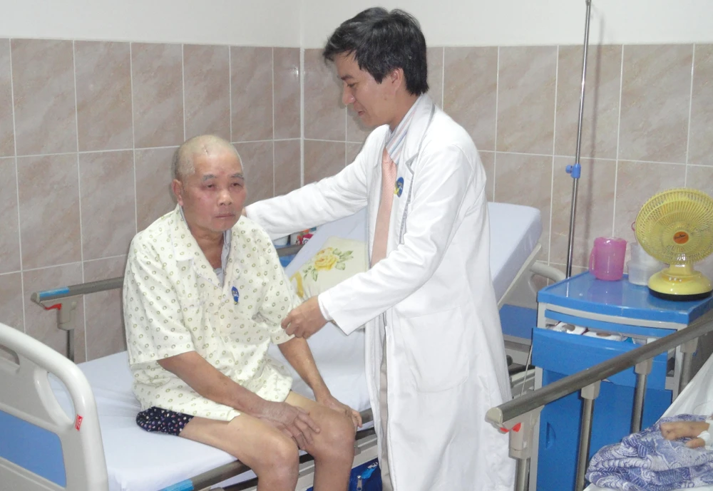Bác sĩ Đinh Văn Cội và bệnh nhân Mai Văn Gẫm đã tỉnh táo hoàn toàn sau ba tuần điều trị. Ảnh: DUY TÍNH