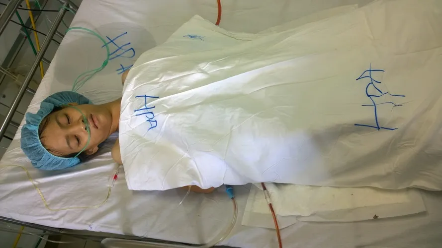 Lập tức, các bác sĩ đã tiến hành xét nghiệm, mời hội chẩn và xác định bệnh nhân L. bị u quái buồng trứng vỡ gây tràn máu ổ bụng, suy hô hấp do tràn dịch màng phổi hai bên, nên tiến hành mổ cấp cứu trong đêm.