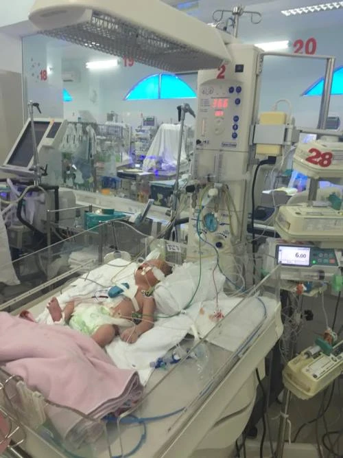Bệnh nhi ra vừa ra khỏi bụng mẹ đã được ê kíp BS BV Nhi Đồng 2 nhanh chóng hồi sức, phẫu thuật tại chỗ để đặt ngay máy tạo nhịp nhân tạo để nâng nhip tim từ 38 lên 136 lần/ phút, nhờ vậy đã cứu sống bệnh nhi một cách thật ngoạn mục. Ngay sau đó, bệnh nhi được chuyển về chăm sóc an toàn tại khoa Hồi sức Sơ sinh, BV Nhi đồng 2.