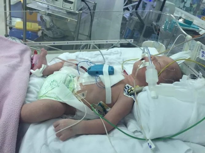 Theo TS Định, bệnh nhi được phát hiện bị tim bẩm sinh (block nhĩ-thất độ III , nhịp tim chỉ khoảng 30-40 lần/phút thay vì phải là 180 lần/phút) ngay từ 25 tuần tuổi trong bụng mẹ.
