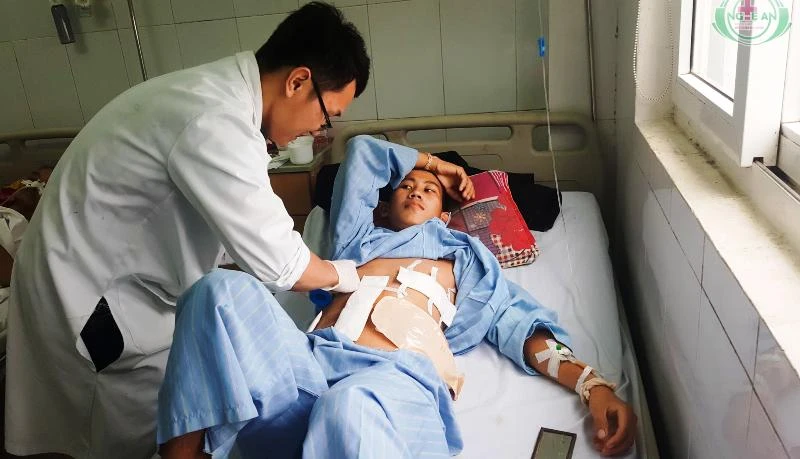 Ca phẫu thuật kéo dài bốn tiếng đồng hồ được thực hiện bởi hai chuyên khoa Lồng ngực và Ngoại Tiêu hóa của BV Hữu nghị đa khoa tỉnh Nghệ An. Vết thương tim được êkíp Ngoại lồng ngực xử lý, lấy ra dị vật kích thước 0,6 x 0,8 cm rồi khâu vết thương tim, dẫn lưu màng phổi trái.