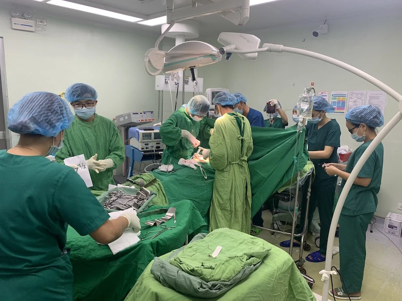 Hiện bệnh nhân tỉnh, tự thở, mạch, huyết áp ổn định, vết mổ khô và đang tiếp tục được theo dõi, điều trị.
