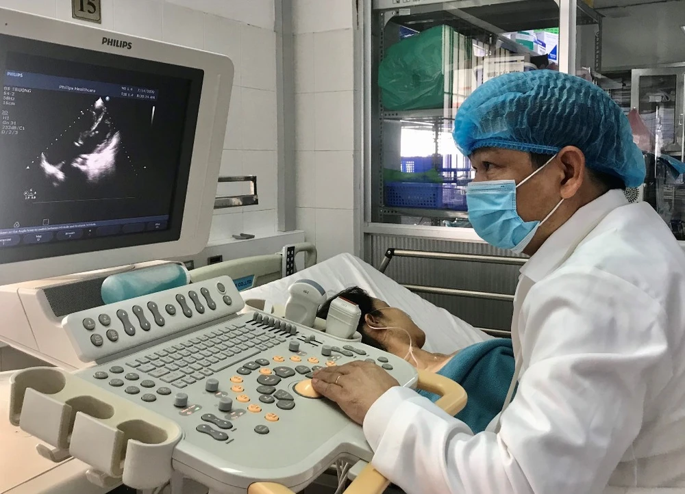 Bác sĩ siêu âm cho sản phụ T. sau phẫu thuật. Ảnh: BV cung cấp.
