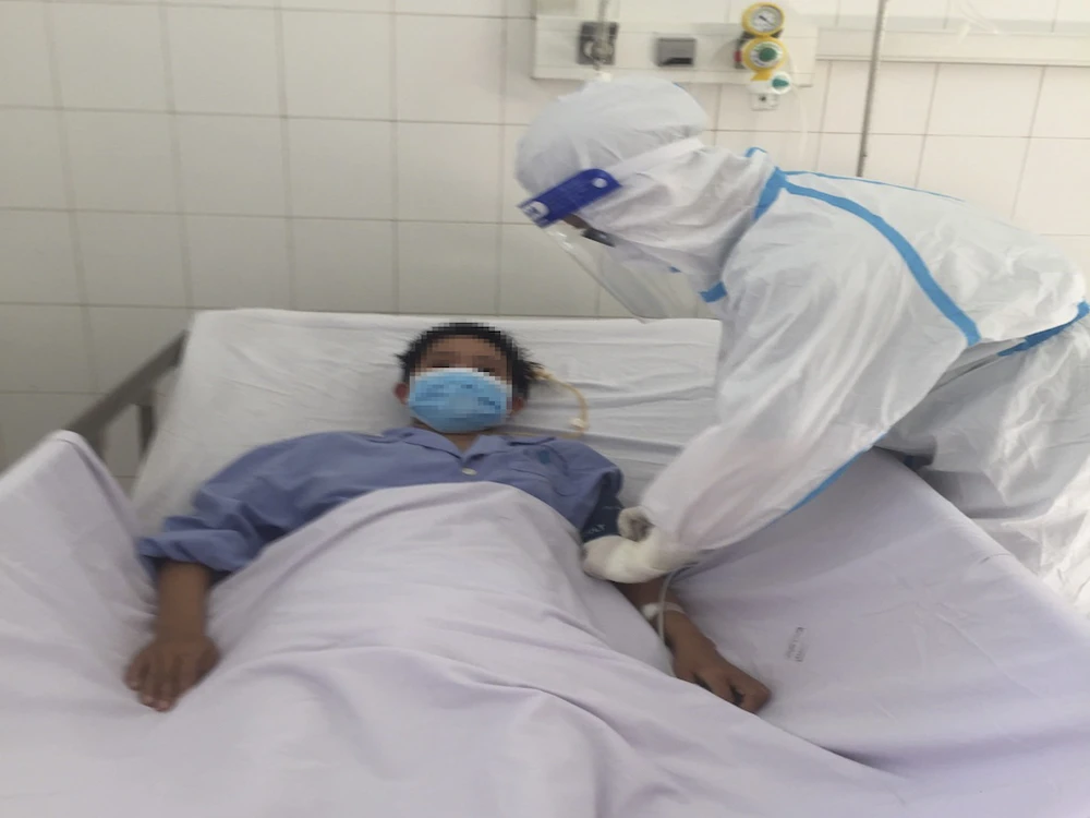 Bệnh nhân NTCR (28 tuổi, ngụ tỉnh Đồng Tháp) đang mang thai tuần thứ 20, được chuyển đến trong tình trạng sốt cao, mệt mỏi, khó thở, phải hỗ trợ bóp bóng qua nội khí quản do bị nhiễm COVID-19.