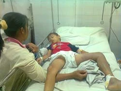 Đến ngày hôm sau trẻ than mệt, đau nhức chân và sưng bầm và lan lên cẳng chân, đùi nên người nhà đưa trẻ đến bệnh viện Nhi đồng 1.