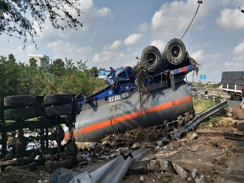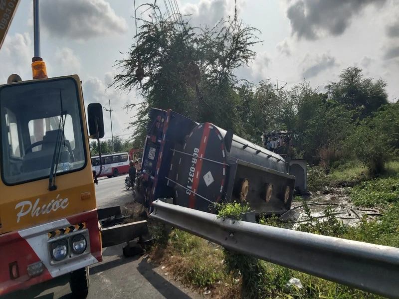 Theo thông tin ban đầu, khoảng 5 giờ sáng 19-3, xe bồn 60C-461.56 do tài xế Đoàn Ngọc Sum (ngụ Thái Bình) điều khiển, lưu thông từ hướng cao tốc TP.HCM - Trung Lương xuống đường dẫn ra QL62 (đoạn qua xã Lợi Bình Nhơn, TP Tân An, Long An).