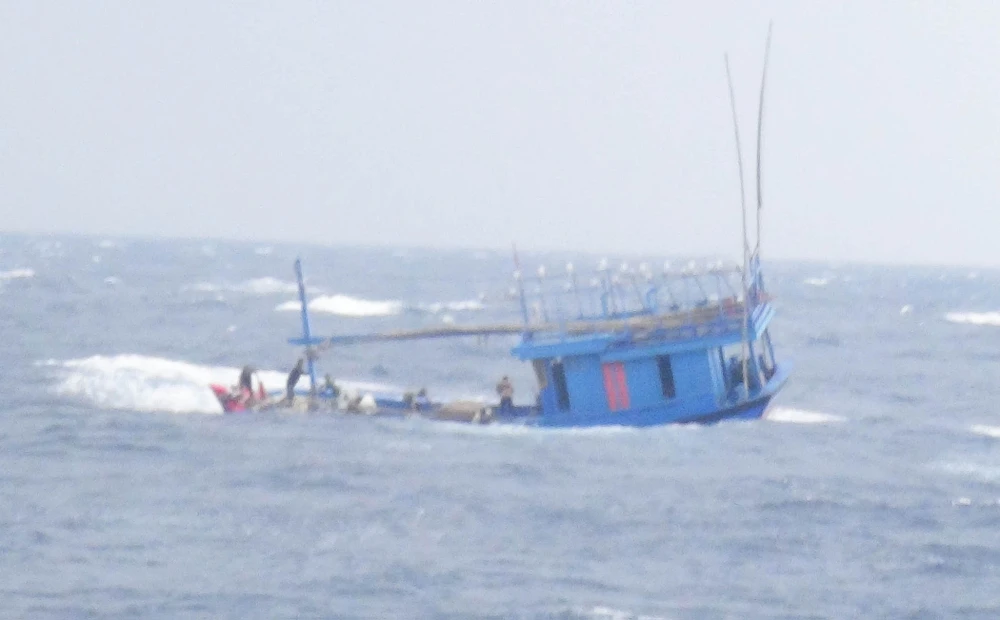 Tàu cá có nguy cơ bị chìm trước khi được Cảnh sát biển đến cứu nạn. Ảnh do cảnh sát biển cung cấp