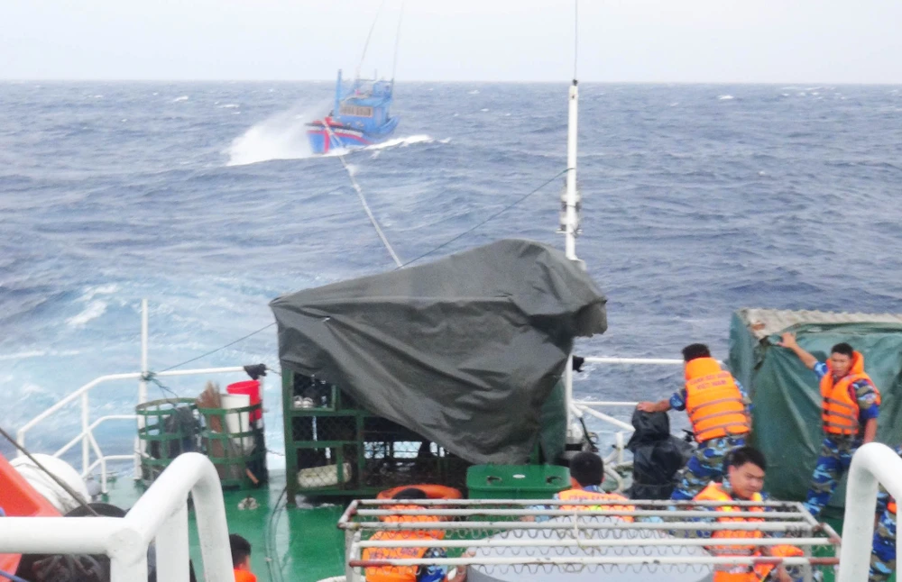 Ông Tô Thanh Quang, thuyền trưởng tàu cá bị nạn, cho biết tàu của ông xuất bến tại cảng Quy Nhơn sáng 28-2, đang trên đường thẳng tiến ra ngư trường Trường Sa thì bị nạn. “Rất may lực lượng cảnh sát biển đã kịp thời cứu nạn chúng tôi cùng tàu cá. Nếu không có tàu cảnh sát biển, chúng tôi chưa biết tính mạng mình sẽ ra sao vì lúc đó biển động rất mạnh, sóng to, gió lớn khiến tàu có nguy cơ bị chìm bất cứ lúc nào” - ông Quang xúc động nói.