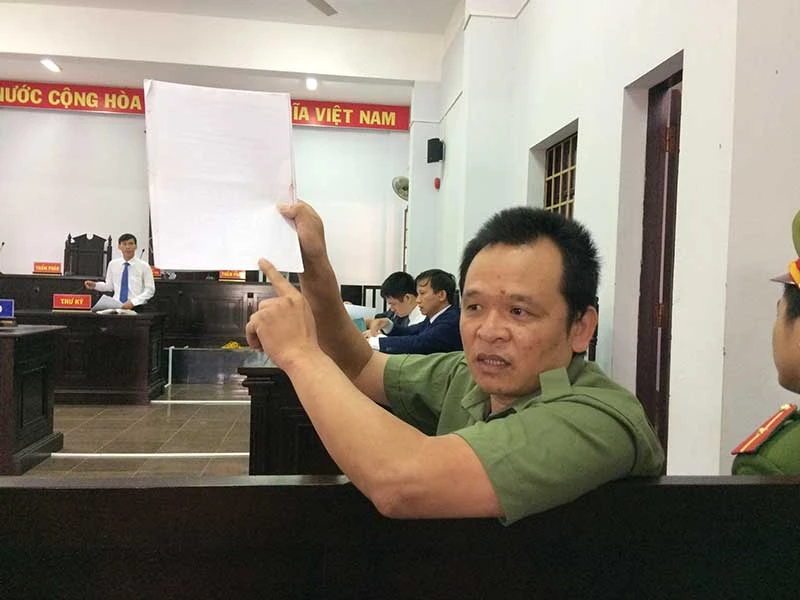 Cựu thiếu tá công an Phạm Xuân Sáng tại phiên tòa hồi tháng 4-2018. Ảnh: CHÂU YẾN