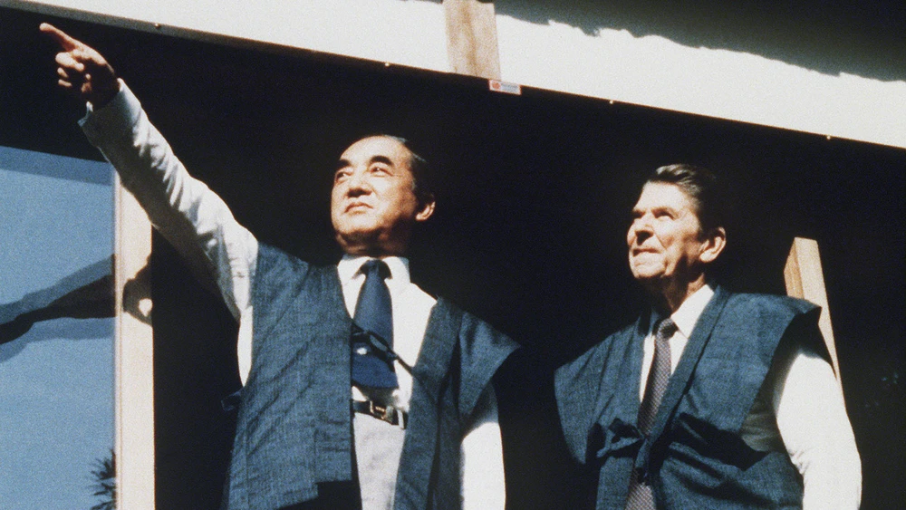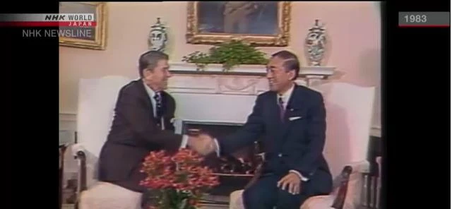 Cựu Thủ tướng Nhật Bản Yasuhiro Nakasone và cố Tổng thống Mỹ Ronald Reagan những năm 1980. Ảnh: NHK
