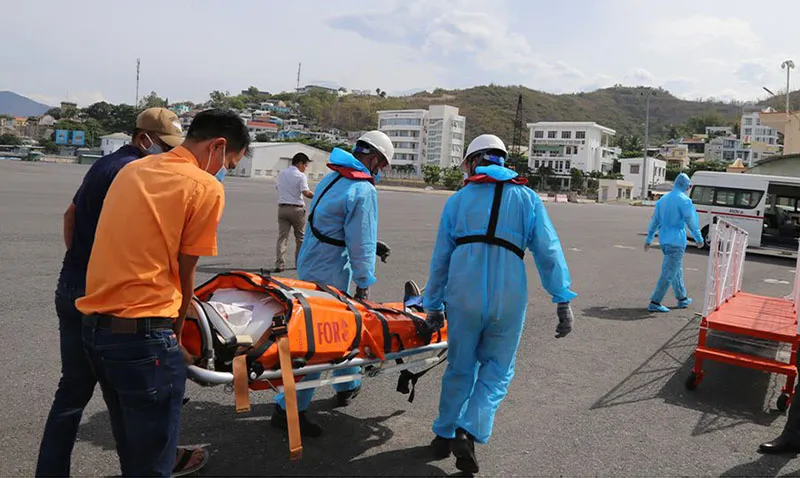 Trước đó, chiều 1-7, khi đến vùng biển cách TP Nha Trang 236 hải lý, anh Kaidalov Oleksand bị đau ở vùng bụng, liên tục nôn ói, không thở được, chẩn đoán bị viêm tụy cấp.