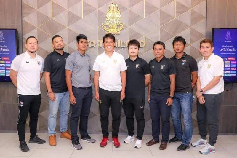 HLV Tawan (thứ ba từ phải sang) rời ghế trợ lý cho HLV Nishino. Ảnh: B.P