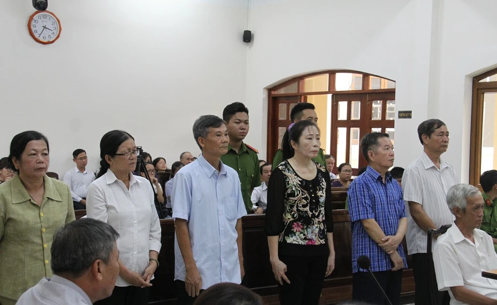 Các bị cáo trong vụ án tại tòa sơ thẩm. Ảnh: Vũ Hội.