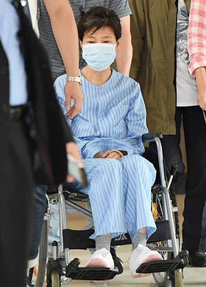 Theo tờ Chosun Ilbo, cựu Tổng thống Hàn Quốc Park Geun-hye hôm 30-8 đã được đưa tới bệnh viện St. Mary ở Nam Seoul để kiểm tra bệnh đau lưng. Mặc trong mình bộ quần áo dành cho bệnh nhân, bà Park ngồi trên chiếc xe lăn và được đưa đi kiểm tra.
