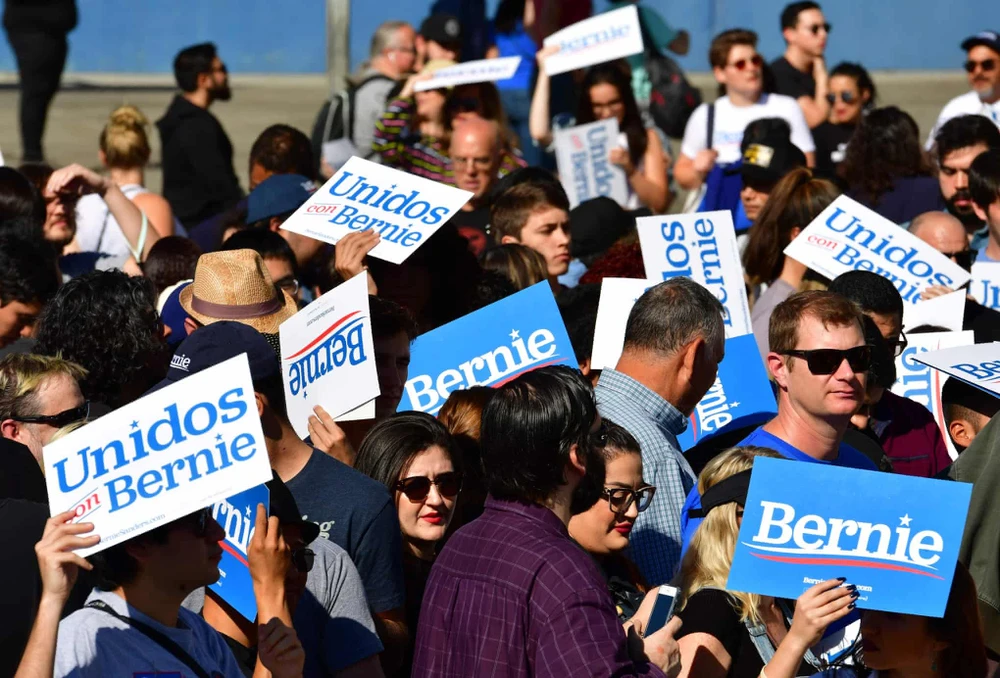 Những người ủng hộ ứng viên Bernie Sanders tại một chiến dịch ở Los Angeles, California vào ngày 16-11. Ảnh: AF