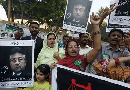 Những người ủng hộ ông Musharraf biểu tình đòi chính quyền Pakistan phải xét xử ông một cách công bằng - Ảnh: Reuters