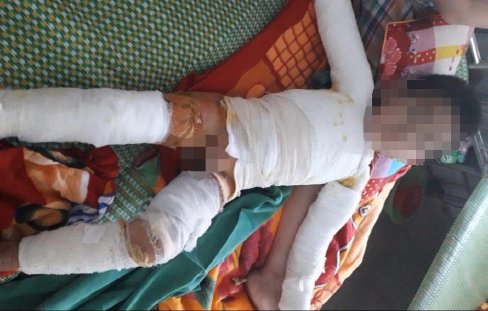 Chiều 22-5, Khoa chấn thương chỉnh hình - Bỏng, BV Sản nhi Nghệ An cấp cứu, điều trị cho bé TrHĐ (năm tuổi, trú xã Đức Thành, huyện Yên Thành, Nghệ An) bị bỏng nặng do nghịch bật lửa gây cháy quần, áo.