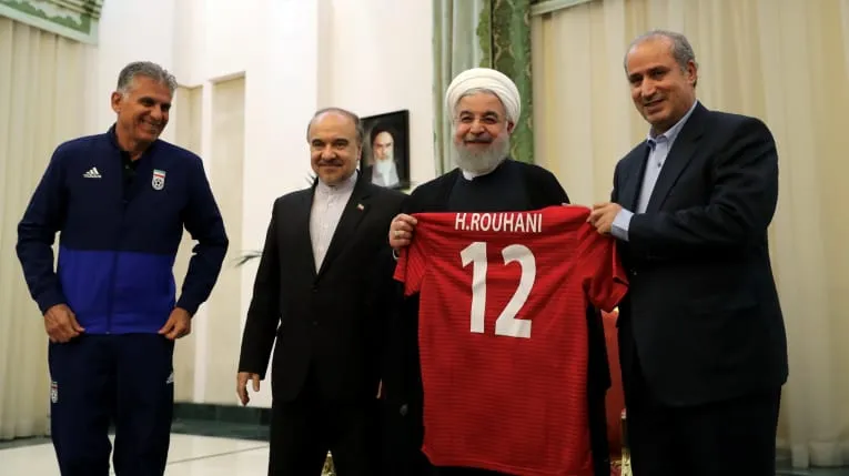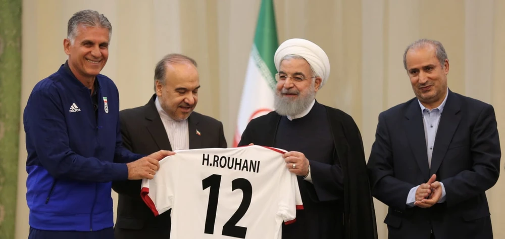 HLV Carlos Queiroz tặng áo đấu cho Tổng thống Hassan Rouhani.