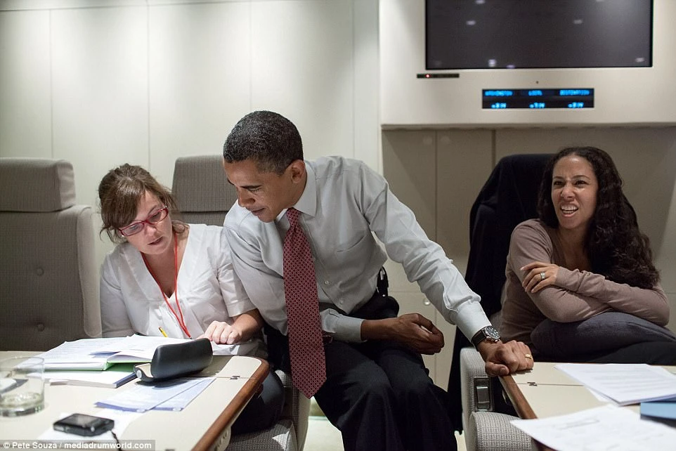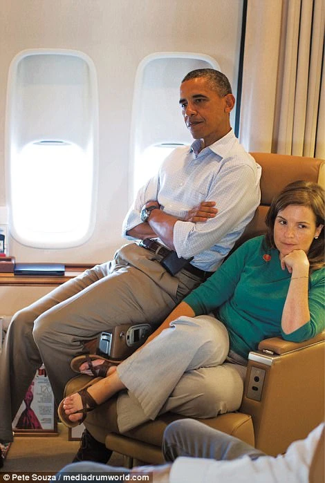 Mastromonaco đang ngồi cạnh ông Obama khi làm việc tại Nhà Trắng. Ảnh: Pete Souza