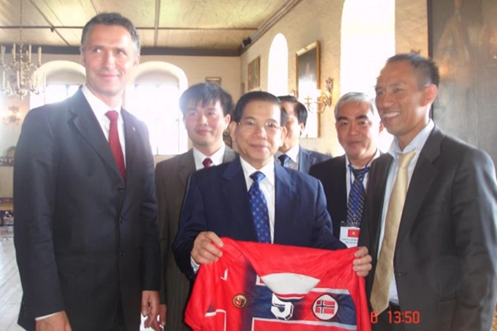 mời đến. Tại đây anh đã tặng Chủ tịch nước chiếc áo đỏ số 5 của mình trong màu áo Đội tuyển bóng đá Na Uy với lời chúc bóng đá VN sẽ bay xa, bay cao hơn nữa.