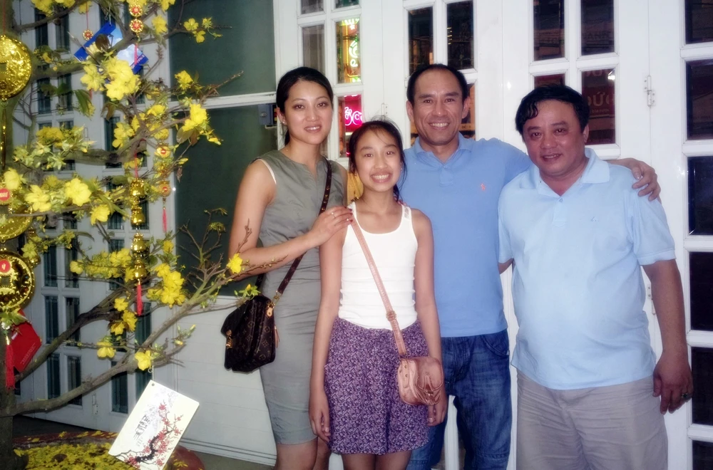 Hai Ngoc Tran cùng vợ con và tác giả trong lần về Việt Nam cuối năm 2015