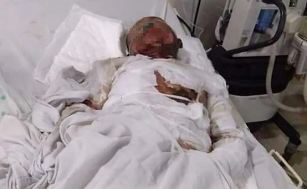 Cháu Kh. vào can ngăn mẹ cũng bị bỏng rất nặng. Ảnh: TN