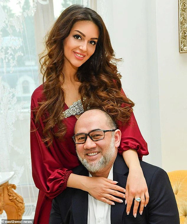 Cựu vương Muhammad V hạnh phúc bên hoa khôi Nga. Ảnh: EAST2WEST NEWS