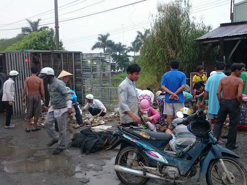 Chiếc xe tải bị sạt vào lề đường rồi lật ngang. 800 con vịt trên xe chết ngộp, chủ lô hàng từ Đồng Tháp qua huyện Tân Trụ mua vịt cầm chắc mất trắng vốn đợt này. Ai đó la to kêu gọi, rồi những người dân xung quanh chạy ra giúp gom những con vịt chết rồi bàn nhau mua lại. Nghe đâu lứa vịt chết này còn trong độ hôi lông, vậy mà người ta vận động cả bà con, người quen ra mua phụ, ít nhiều tùy túi tiền, giúp chủ hàng kiếm lại ít đồng vốn. Hai giờ sau, số vịt chết đã được bán hết.