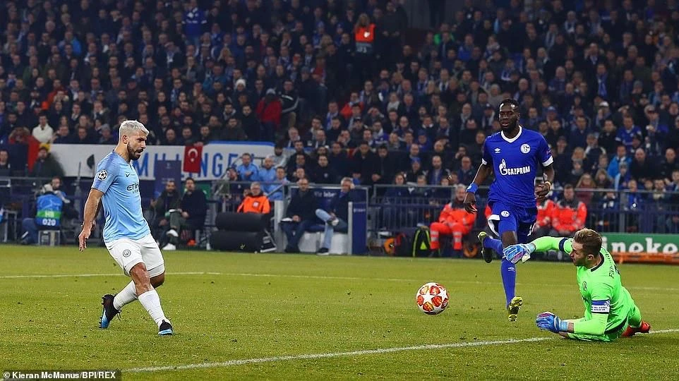 Với cầu thủ chất lượng hơn trong đội hình, Man. City nhanh chóng “hớp hồn” đội chủ nhà Schalke 04. Phút 18 thủ môn Faehrmann chuyền bóng cẩu thả cho hậu vệ, để cho David Silva cướp được bóng. Tiền vệ người Tây Ban Nha nhanh chân kiến tạo để Aguero dễ dàng mở tỷ số 1-0 cho Man. City.