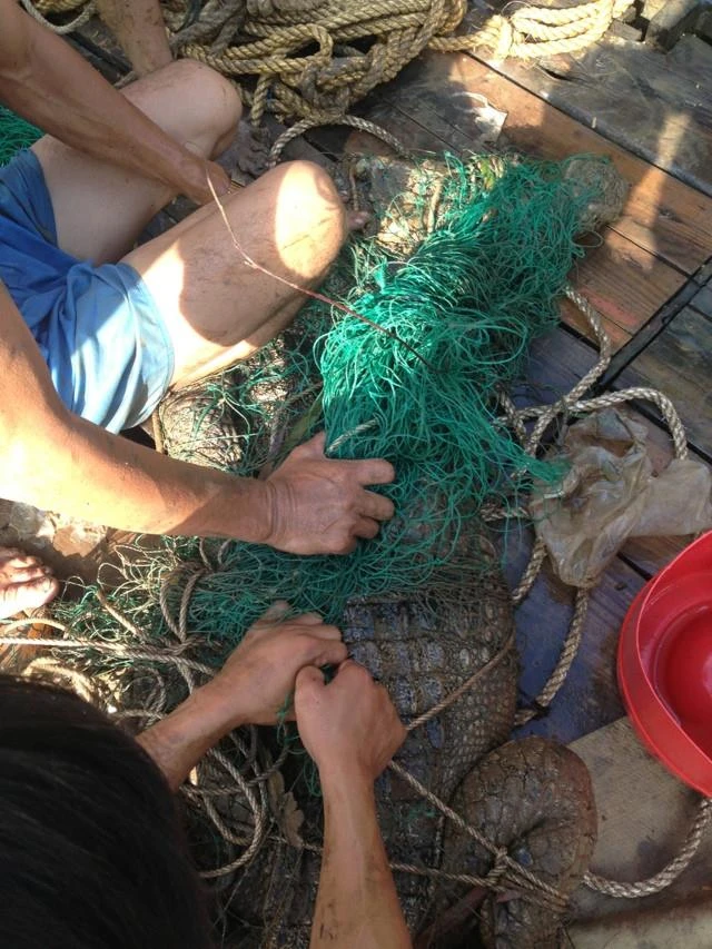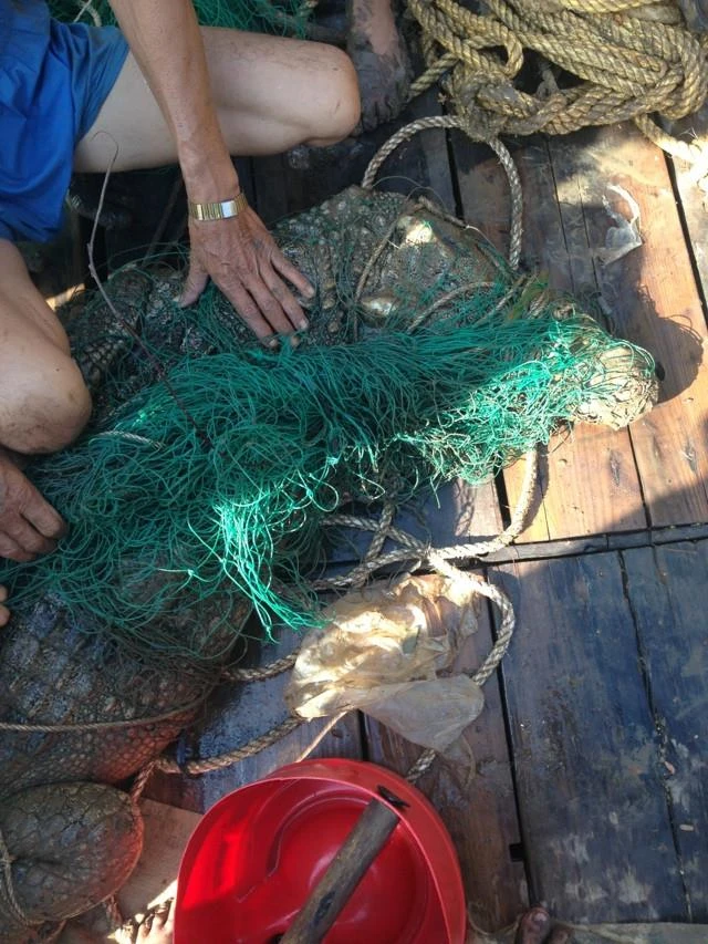 Dưới đây là hình ảnh vây bắt được con cá sấu sáng 2-5: