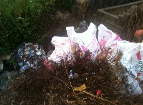 Người dân thu dọn bát nhang bị đập vỡ vào bao tải.