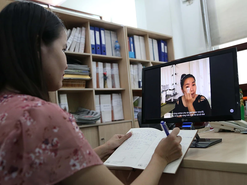 Fanpage của Công ty đa cấp Atomy đăng thông tin quảng bá sản phẩm và chiêu mộ cộng tác viên. Trong ảnh: Một khách hàng đang xem hướng dẫn sử dụng mỹ phẩm Atomy trên mạng. Ảnh: HOÀNG GIANG
