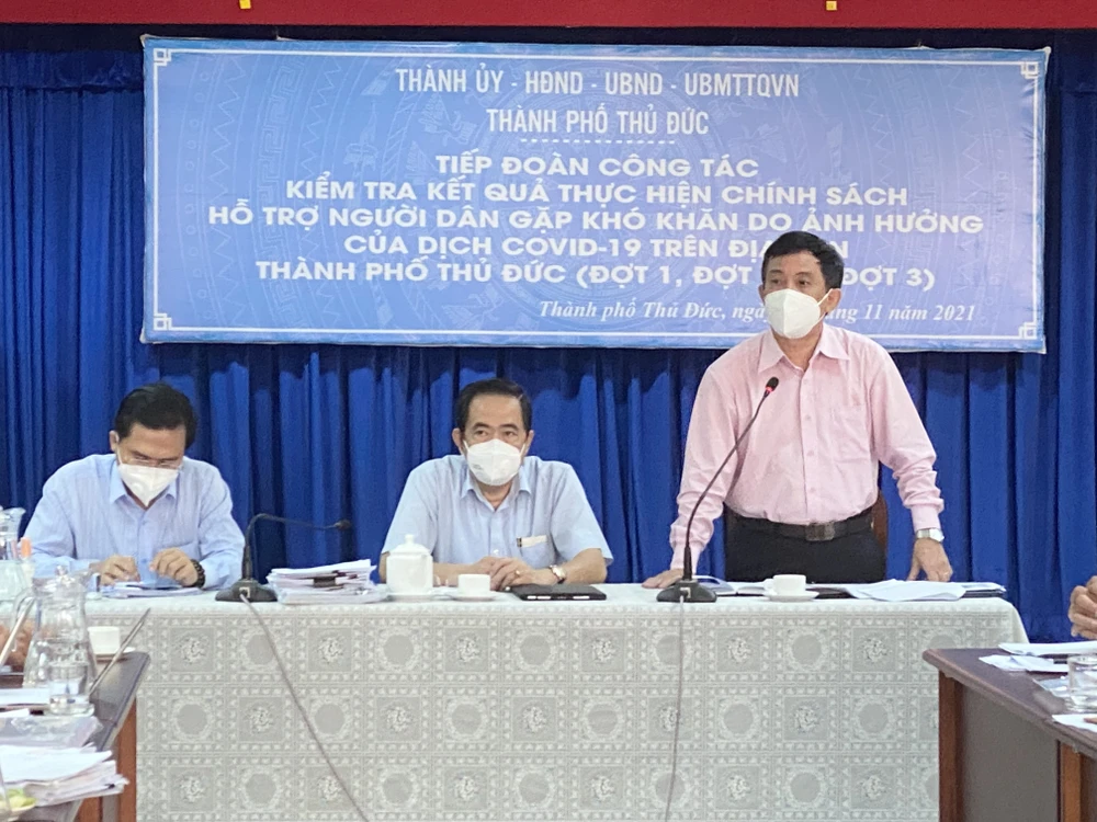 Chiều 12-11, Đoàn kiểm tra do Phó Giám đốc Sở LĐ-TB&XH TP.HCM, ông Nguyễn Văn Lâm làm trưởng đoàn có buổi làm việc, kiểm tra việc chi trả các gói hỗ trợ tại TP Thủ Đức.