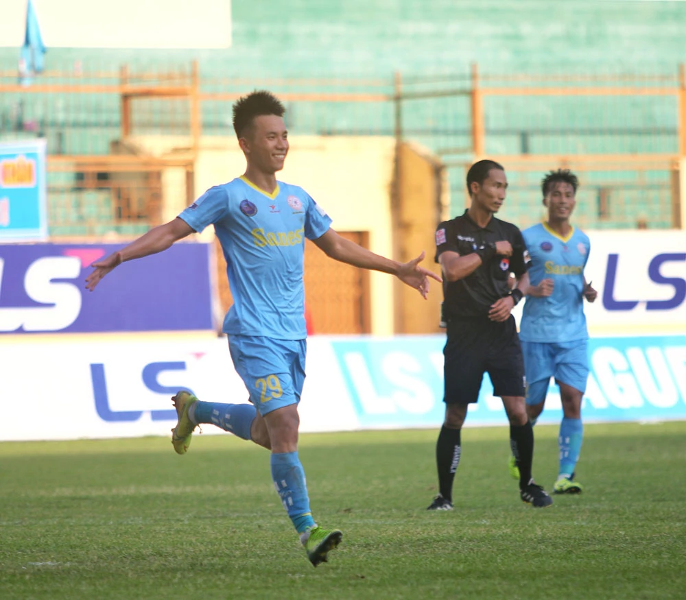 Tình huống cười ra nước mắt ở phút 23, đội trưởng Sỹ Tú của An Giang giật mình với đường chuyền về éo le của đồng đội, anh cũng không quá cố gắng đeo bám mà chấp nhận để cho đối phương dốc bóng trong chốn không người. Tiền đạo Thanh Bình đột nhập vòng cấm không ai kèm rất dễ dàng nhận bóng và sút tung lưới khách mở điểm cho chủ nhà.