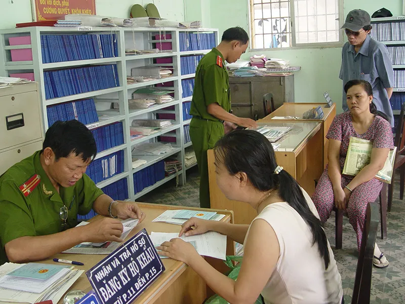 Người dân làm thủ tục về hộ khẩu tại Công an quận Tân Bình, TP.HCM. Ảnh: HTD