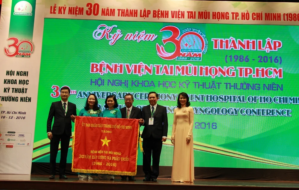 Nhân dịp này, Phó Chủ tịch UBND TP.HCM Nguyễn Thị Thu trao tặng cờ truyền thống cho BV Tai Mũi Họng. Ngoài ra, UBND TP.HCM cũng trao huy hiệu cho tám cá nhân và tặng bằng khen cho năm cá nhân có nhiều đóng góp trong công tác chăm sóc sức khỏe nhân dân.