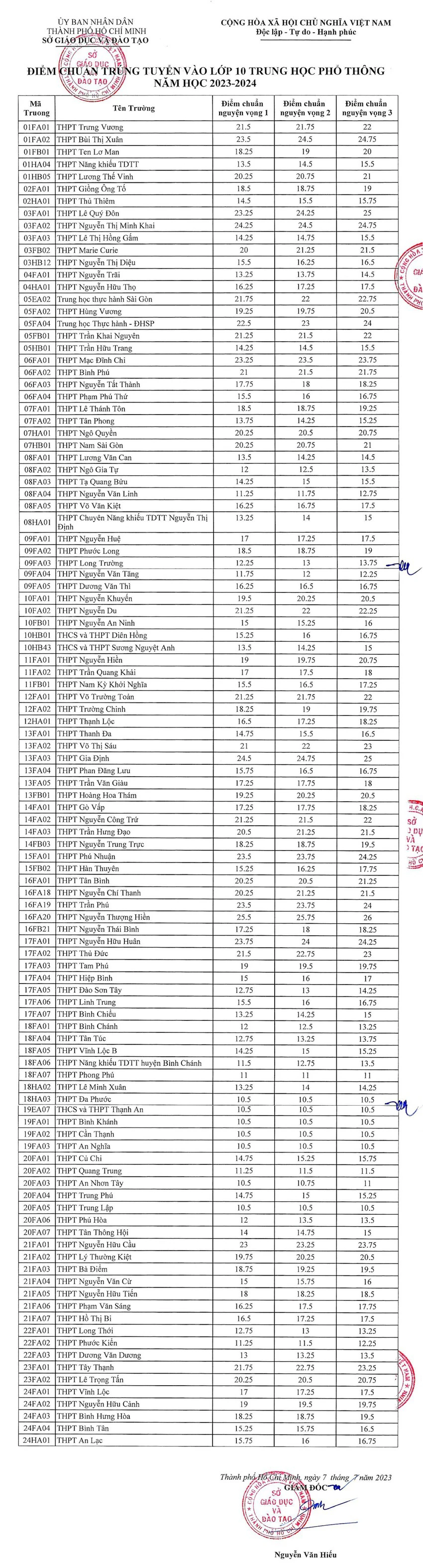 Trước đó, chiều 23-6, Sở GD&ĐT TP.HCM đã công bố điểm chuẩn vào lớp 10 chuyên và tích hợp.
