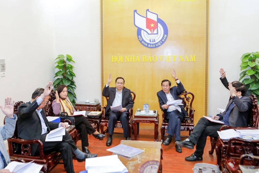 Hội đồng chung khảo biểu quyết kết quả giải báo chí toàn quốc với công tác phòng chống tham nhũng, lãng phí. Ảnh: QUANG VINH