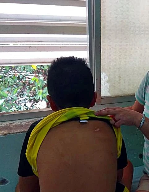 Dù đã gần một tháng nhưng dấu vết của việc hành hạ, tra tấn dã man vẫn hằn trên lưng đứa bé.
