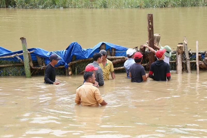Ông Võ Đại Huế, Chủ tịch UBND huyện Krông Ana (Đắk Lắk), cho biết đến tối muộn 13-8, các lực lượng cùng người dân vẫn đang nỗ lực khắc phục tuyến đê Quảng Điền bị vỡ.