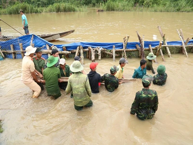 Còn theo Trung tá Lê Hồng Kỳ, Công an huyện Krông Na, sau khi nhận được thông tin vỡ đê thì đơn vị đã cử ngay 200 chiến sĩ xuống xã cùng người dân khắc phục sự cố. Lực lượng vẫn đang túc trực để đảm bảo tính an toàn cho mọi người, đồng thời triển khai lực lượng canh giữ xem tình hình rào chắn và nước trong đêm để xử lý kịp thời.