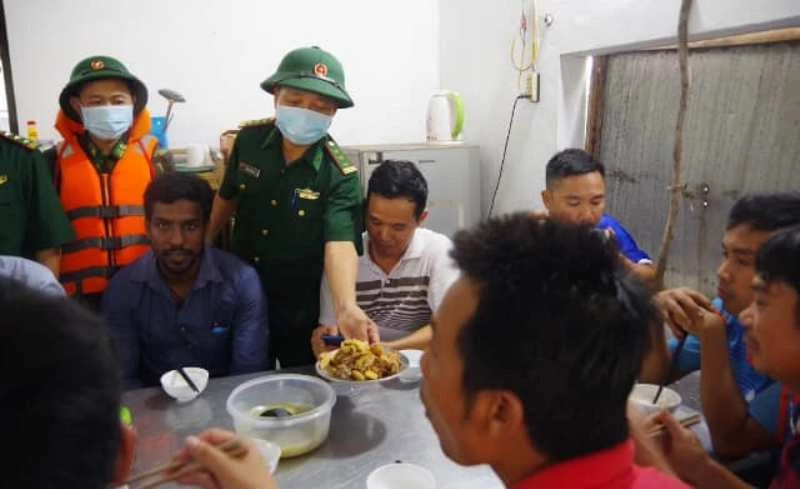 Đầu bếp tàu mang quốc tịch Ấn Độ và các thuyền viên trên tàu được cứu, đưa vào đất liền, chăm sóc sức khỏe. Ảnh: M.TOÀN.