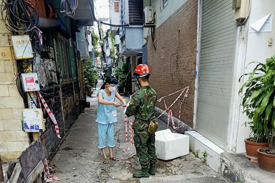 “Phường chúng tôi được lực lượng quân đội hỗ trợ 12 người, gồm một chỉ huy và 11 chiến sĩ phụ trách giao hàng. Chúng tôi phân bổ mỗi khu phố ba dân quân, ba chiến sĩ bộ đội và một cán bộ phường vừa phụ trách giao hàng, đi chợ hộ vừa phối hợp với các lực lượng khác để đảm bảo an ninh trật tự trong phường” - chủ tịch UBND phường 3 nhấn mạnh.