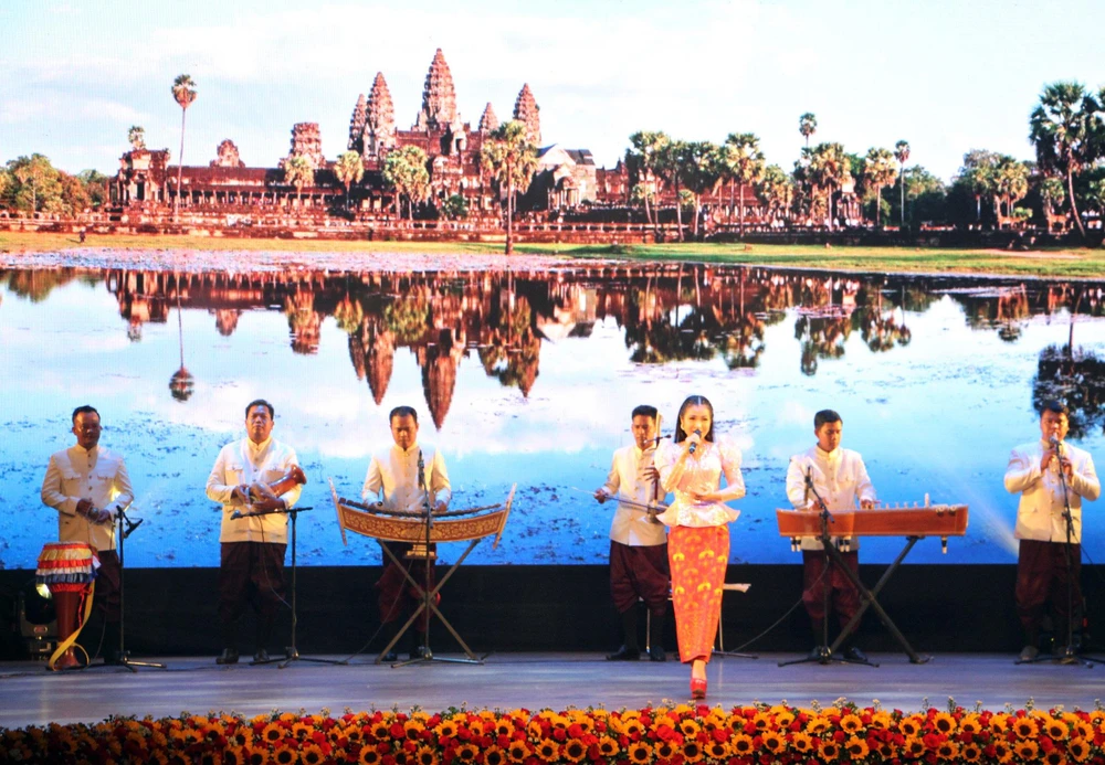 Đối với chương trình, Campuchia mang đến nhiều tiết mục nghệ thuật cổ điển, dân gian và đương đại phong phú về loại hình, trong đó có một số loại hình nghệ thuật đã được UNESCO ghi danh trong danh sách Di sản Văn hóa Phi vật thể của nhân loại. Ảnh: V.H |