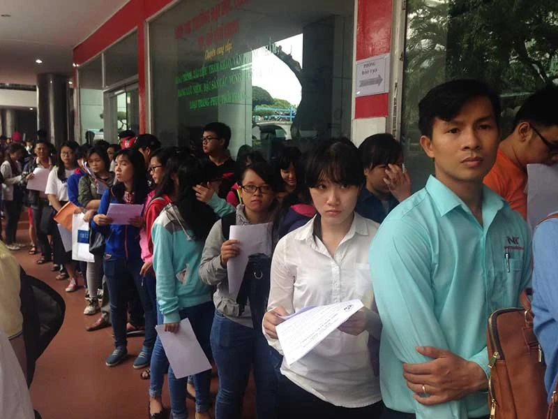 Thí sinh chen chân nộp hồ sơ xét tuyển ngành nghề yêu thích trong mùa tuyển sinh 2016. Ảnh: P.ĐIỀN