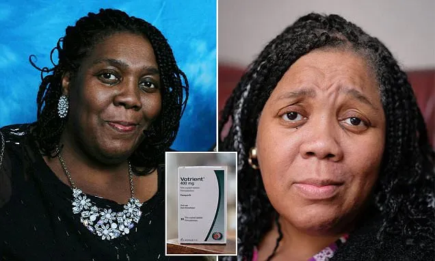 Bà Paula Edwards trước và sau khi uống thuốc trị ung thư Votrient. Ảnh: DAILYMAIL