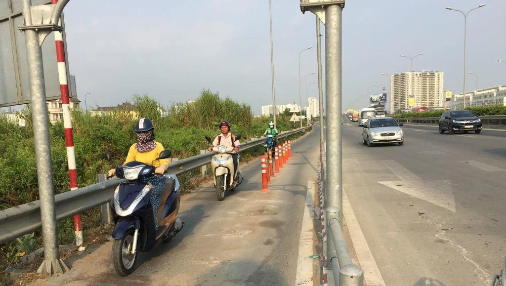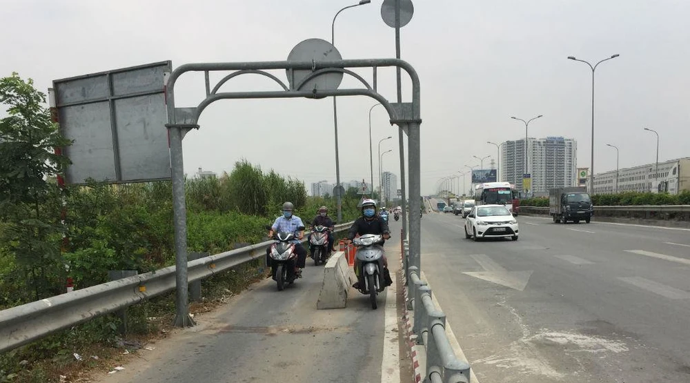 Theo ông Lê Ngọc Hùng, giám đốc Khu quản lý giao thông đô thị số 2, sau khi chỉ còn cọc tiêu mềm ở hai điểm xe máy vào đường dẫn trên khả năng sẽ tái diễn tình trạng các loại xe ô tô con đi chen, lấn vào khi hai làn xe ô tô ở ngoài bị ùn tắc.