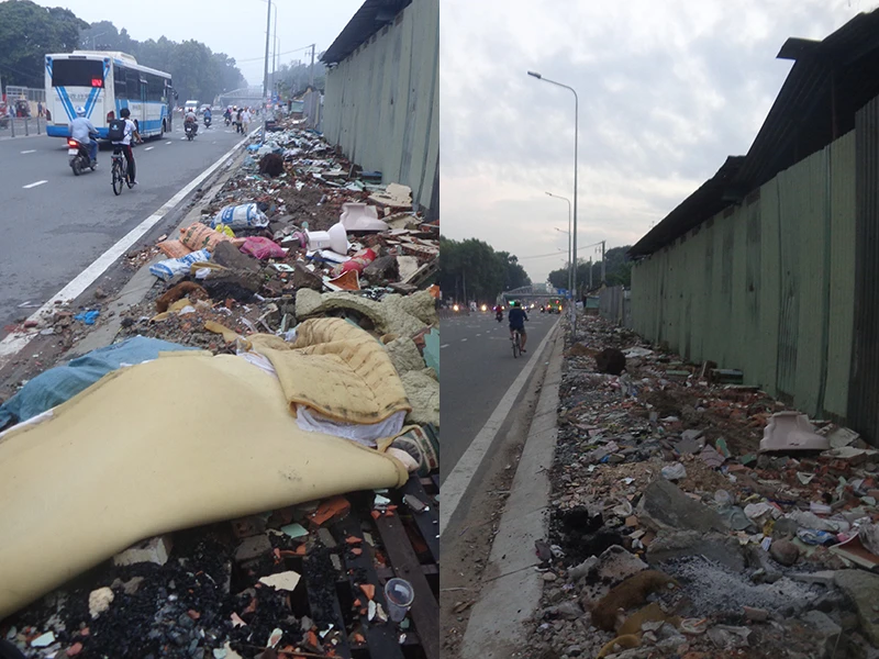 Bãi rác này xuất hiện gần một tháng nay với đủ loại rác rất nhếch nhác, phản cảm, ô nhiễm và nguy hiểm.